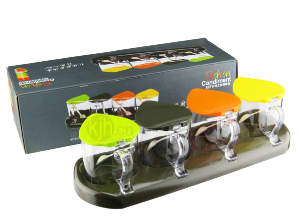 - 透明的盒身易于分辨盒內(nèi)儲(chǔ)存的調(diào)味品,盒蓋采用多種顏色混搭,亮麗多彩,盡顯廚房時(shí)尚之風(fēng)。