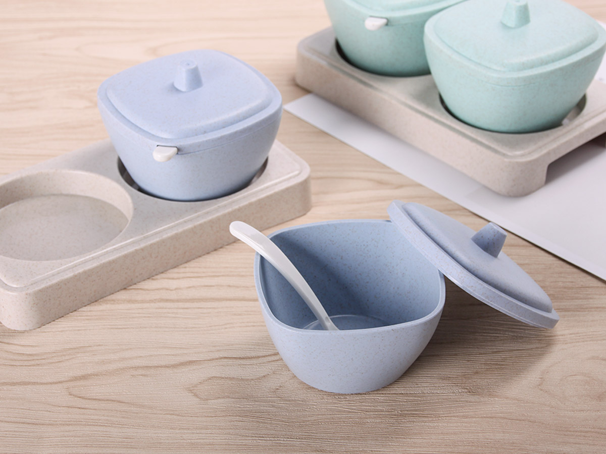 方形日式麥秸稈調(diào)味罐二件套