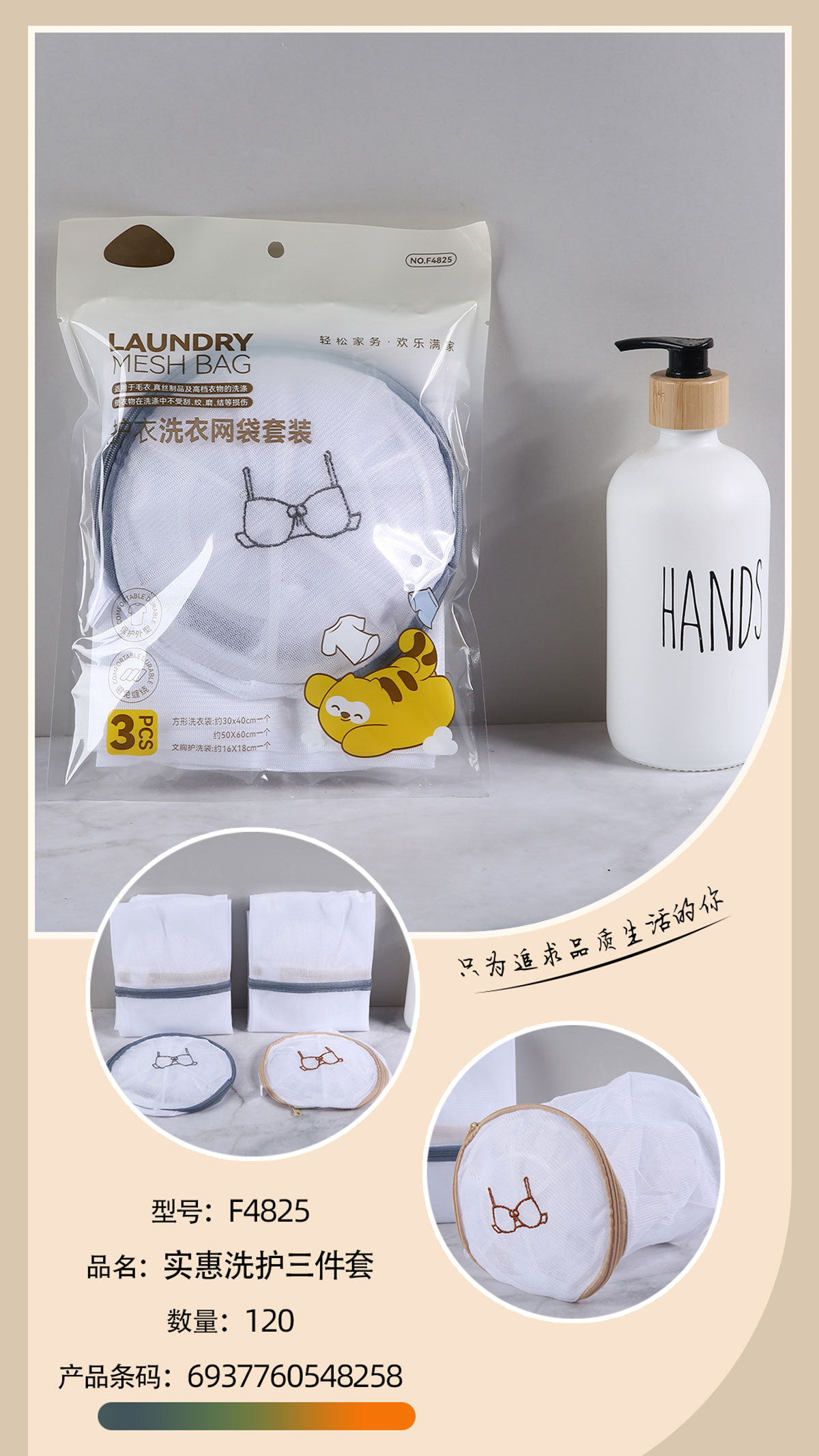 Size: 方形洗衣袋:300*400mm一個,500*600mm一個,文胸護(hù)洗袋:160*180mm一個