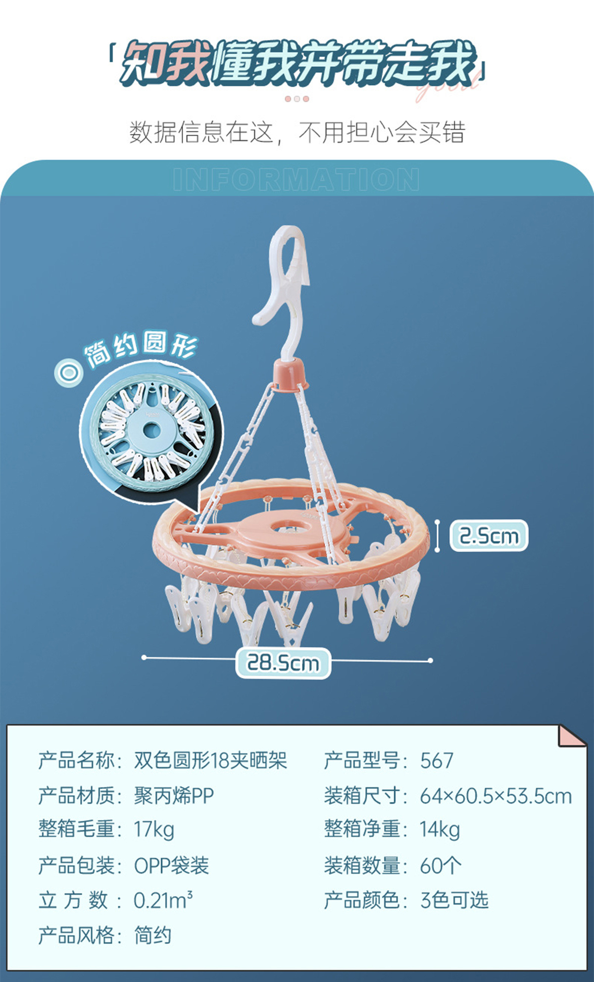 雙色圓形18夾曬架 2023年新色