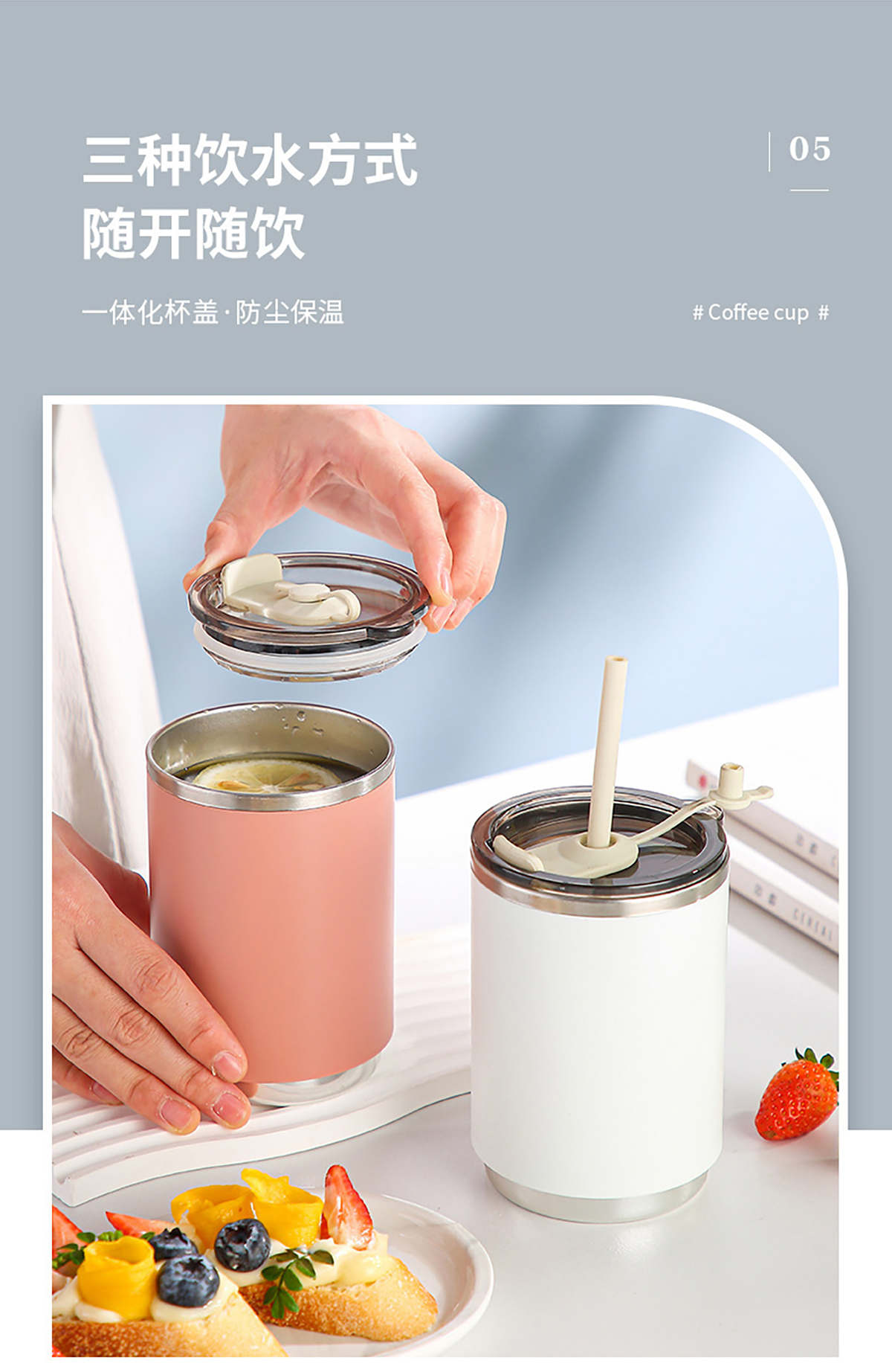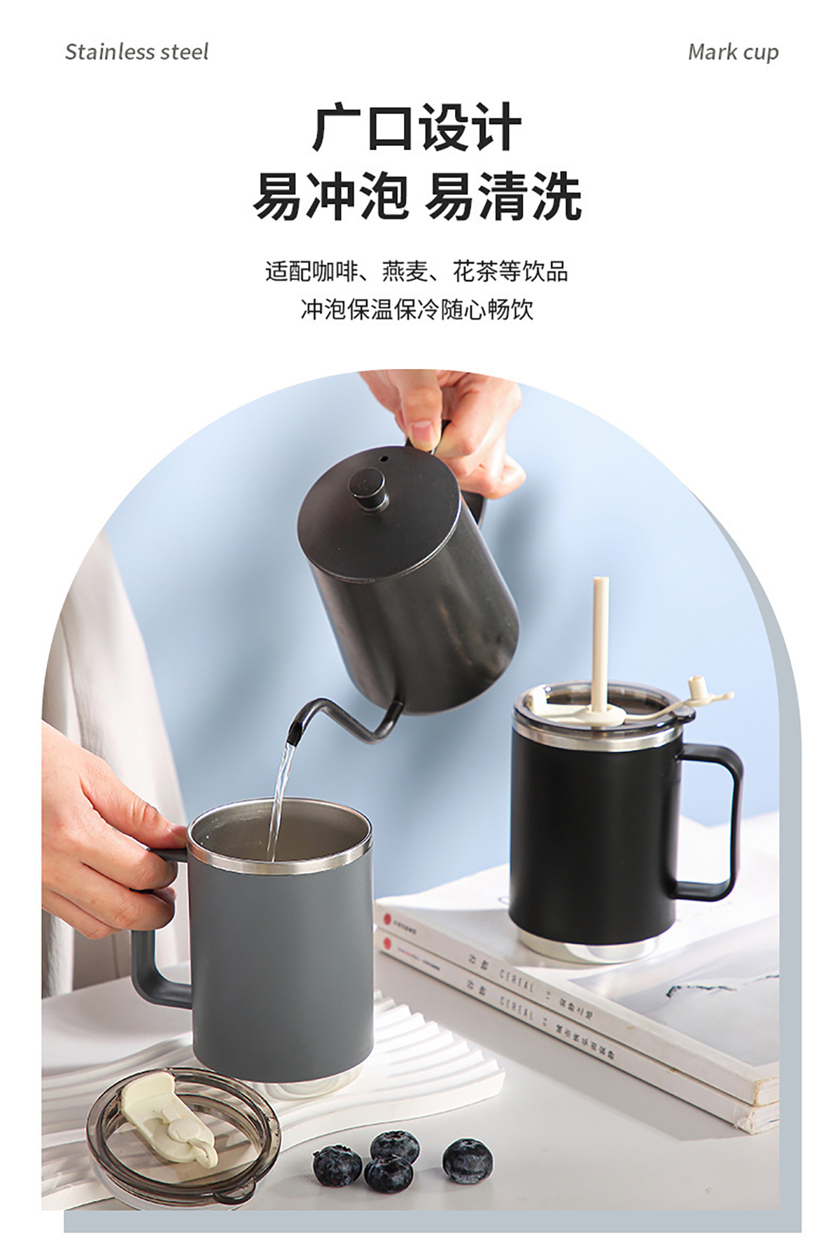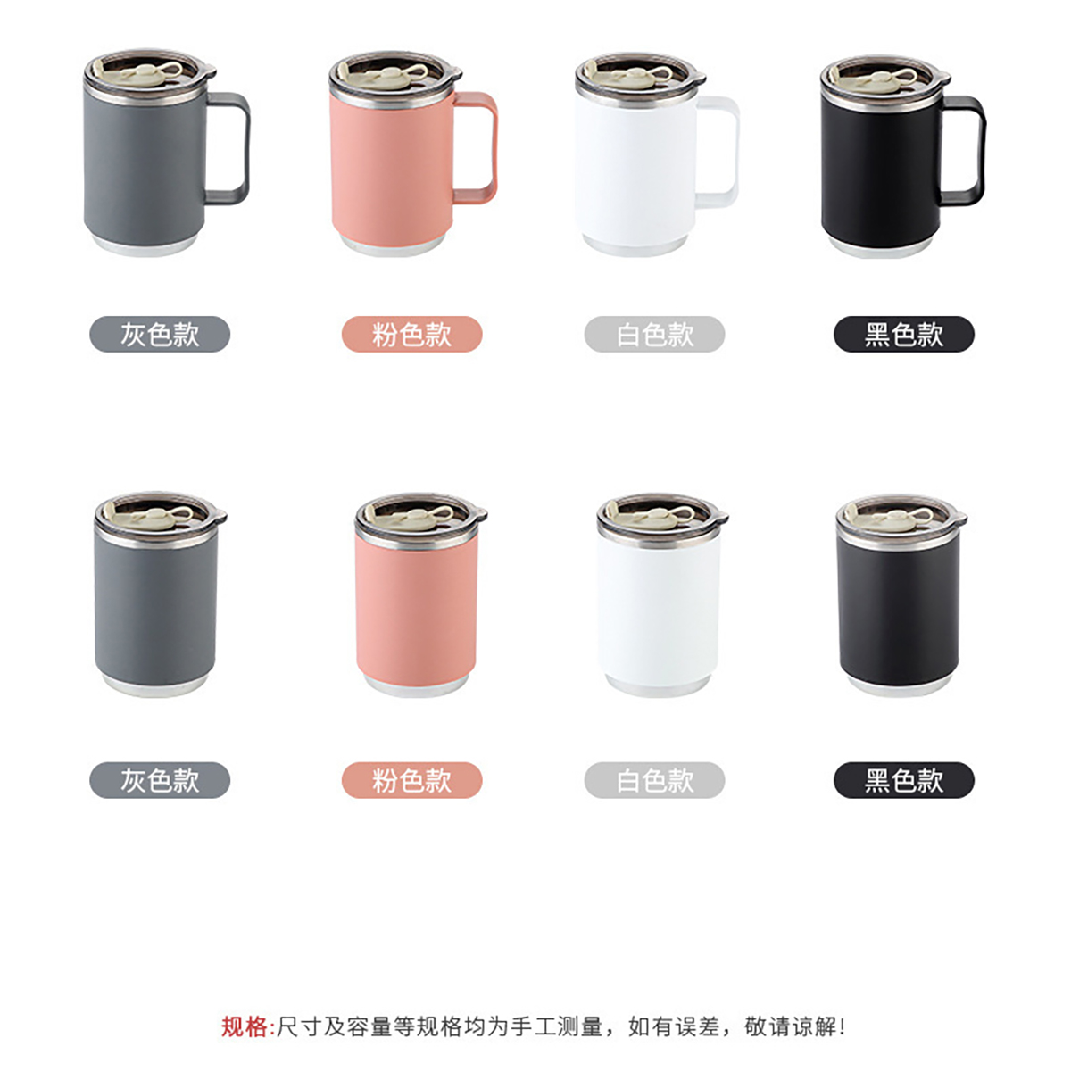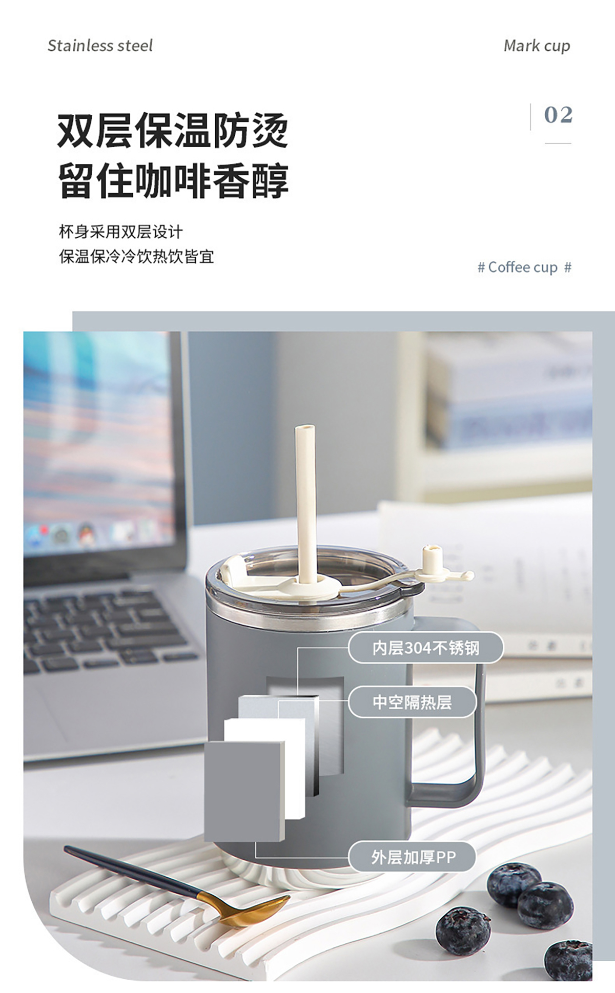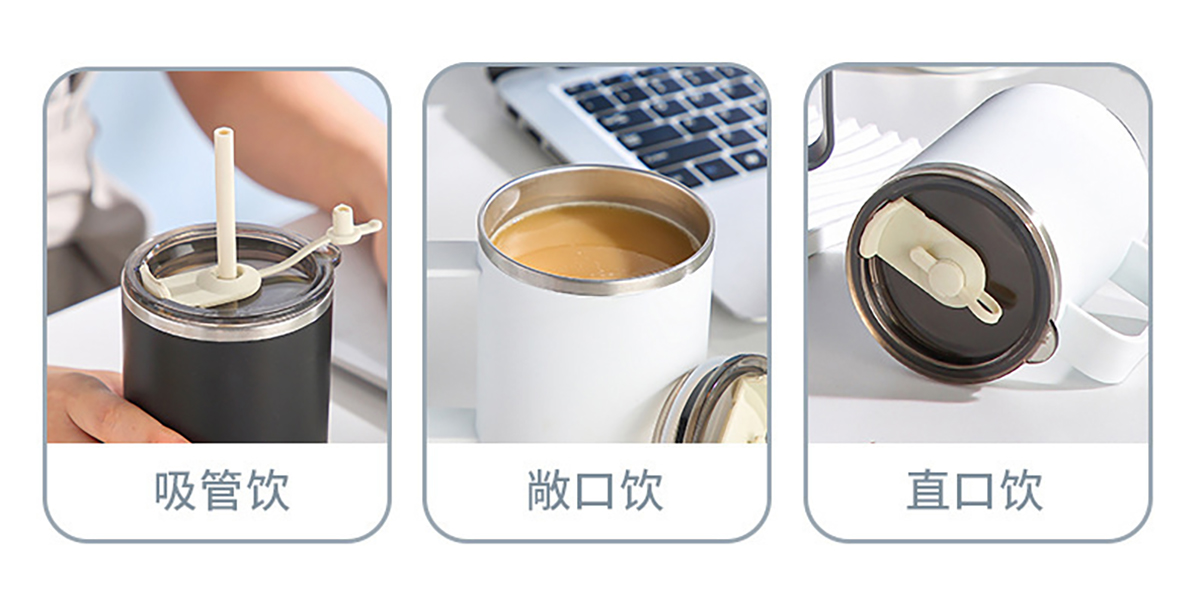 不銹鋼無柄/帶柄辦公杯(帶蓋+吸管)