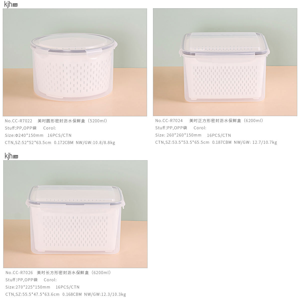 美時圓形/正方形/長方形密封瀝水保鮮盒(5200ml)