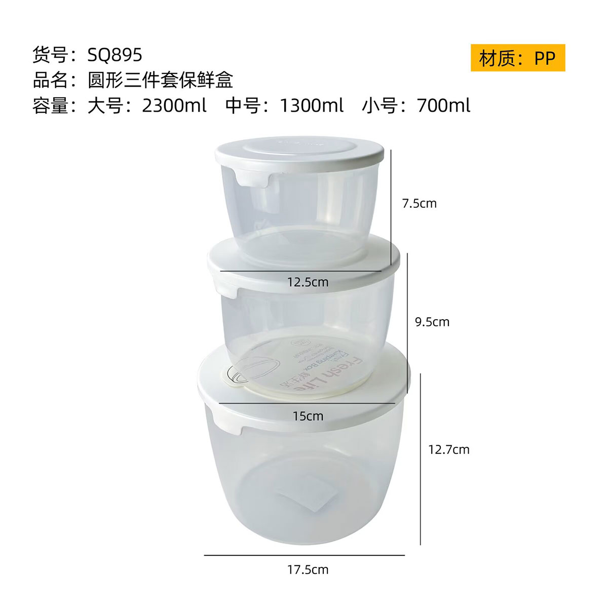 SQ-895(三件套):小號:125*75mm/700ml 中號:150*95mm/1300ml 大號:175*127mm/2300ml