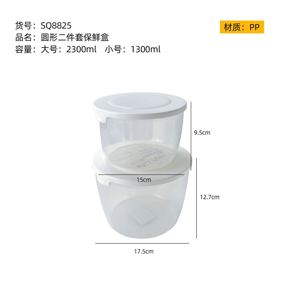 Size: SQ-8825(二件套):中號:150*95mm/1300ml 大號:175*127mm/2300ml