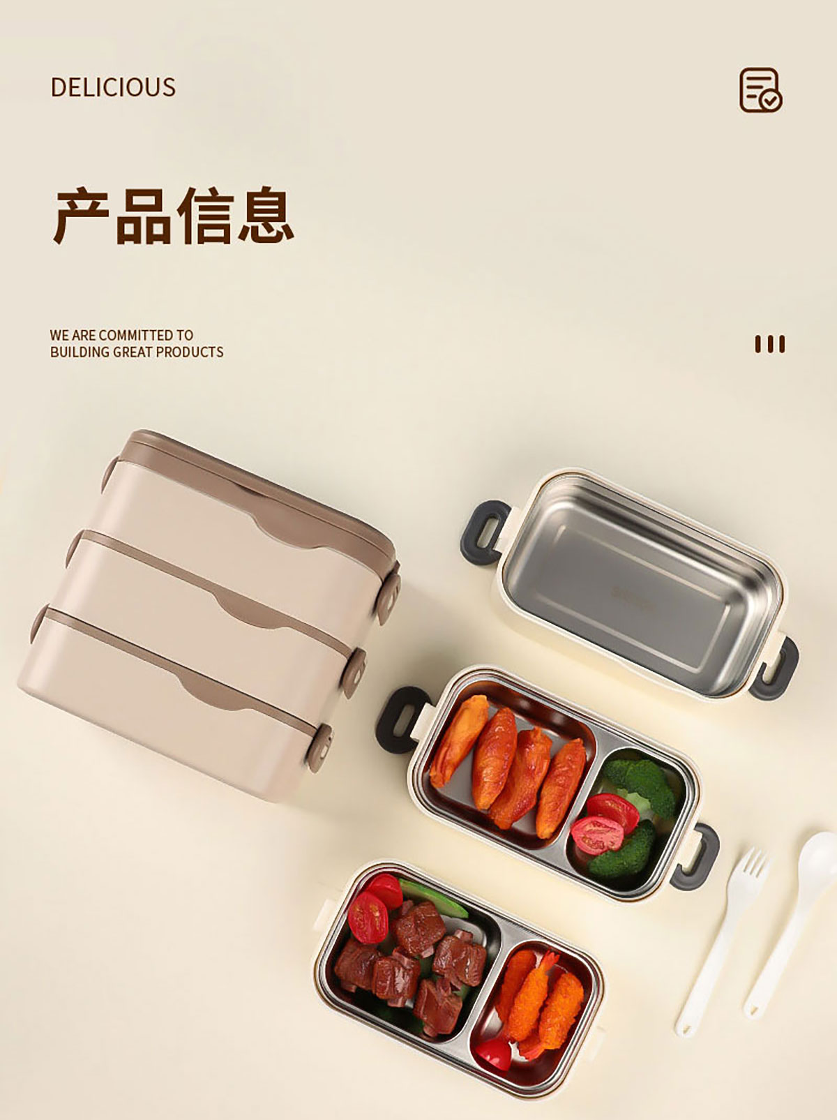 品韻單層/雙層/三層飯盒配叉勺 (塑料/不銹鋼)