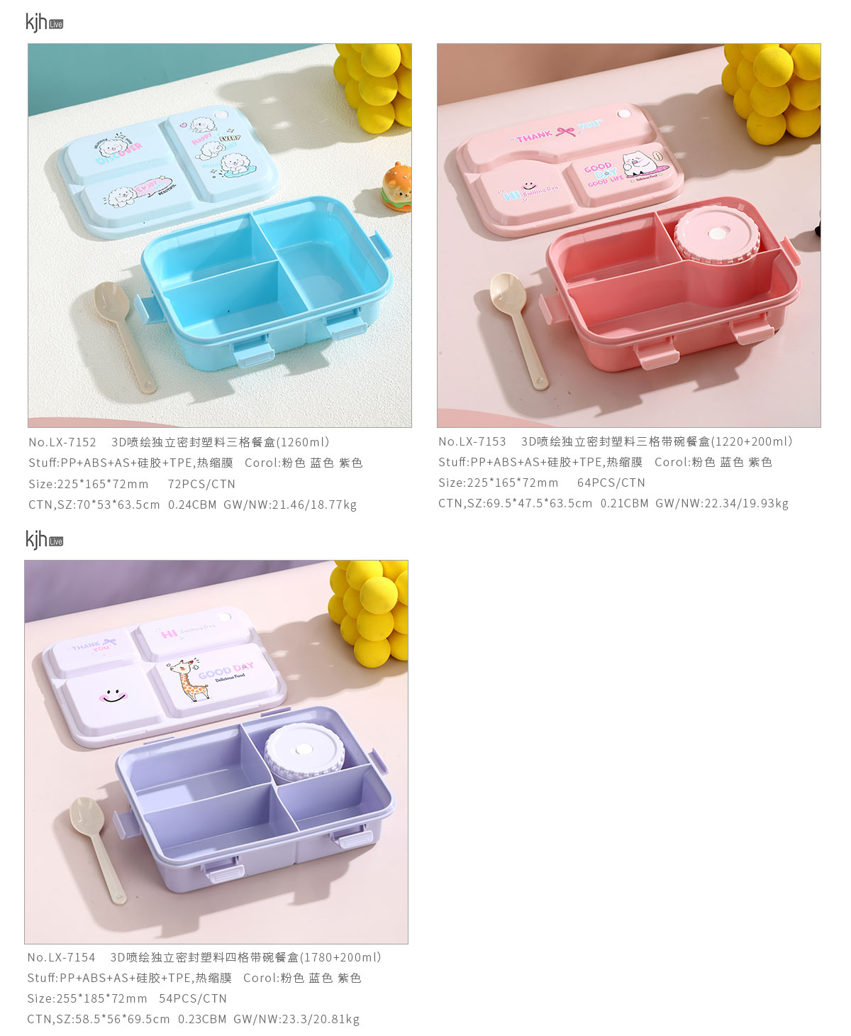 LX-7153(三格帶碗):225*165*72mm