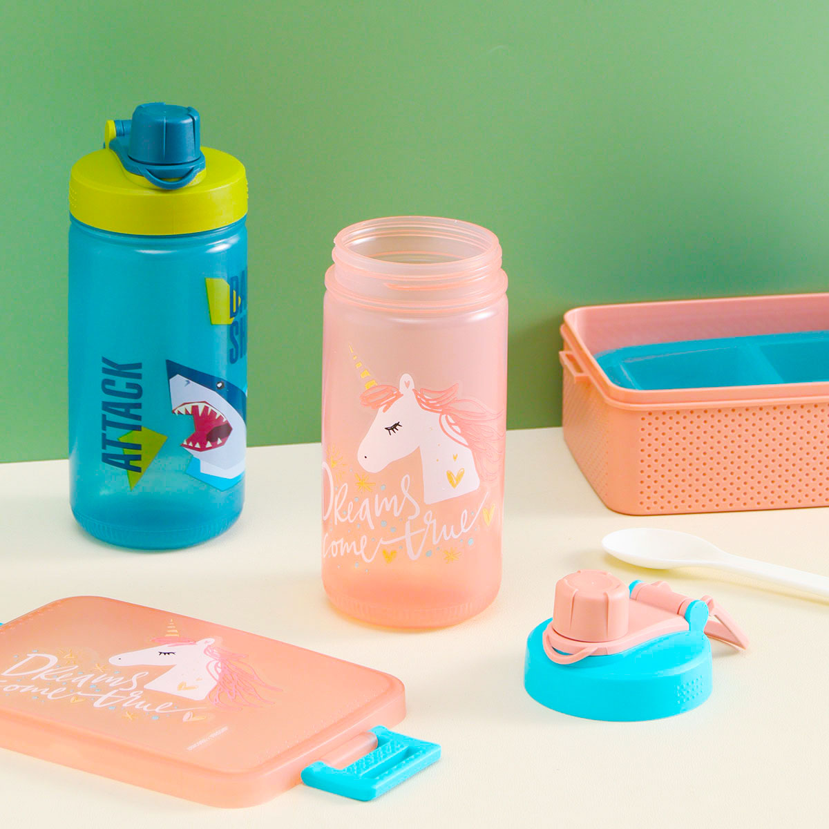 童彩3格飯盒+運(yùn)動(dòng)水壺套裝(含內(nèi)盒800ml+500ml)