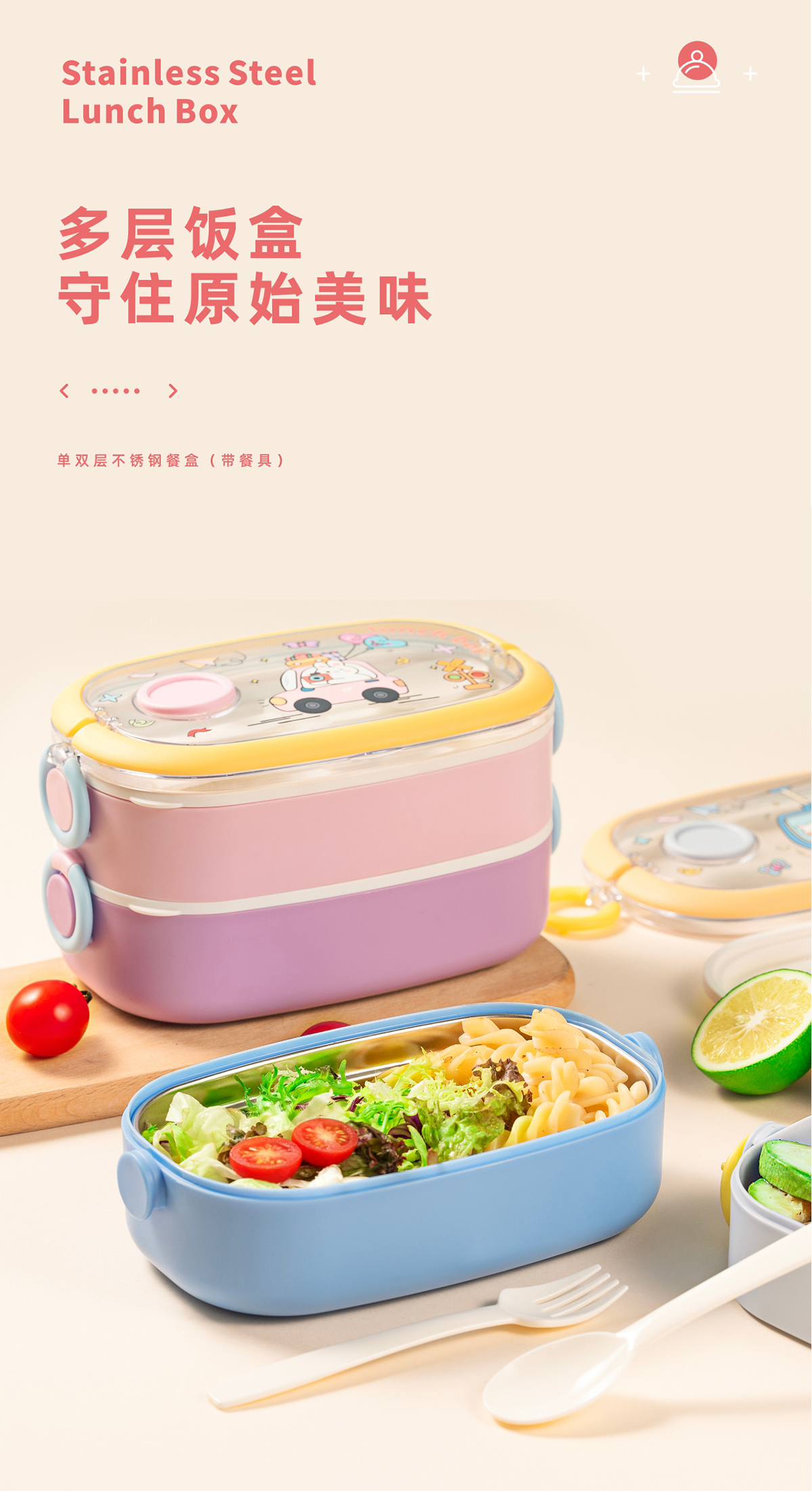 單層/雙層長方形不銹鋼飯盒
